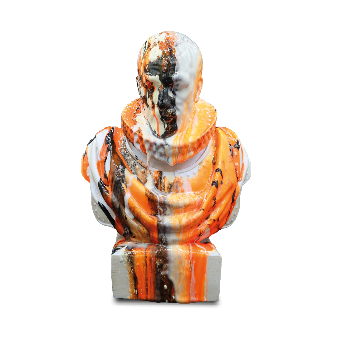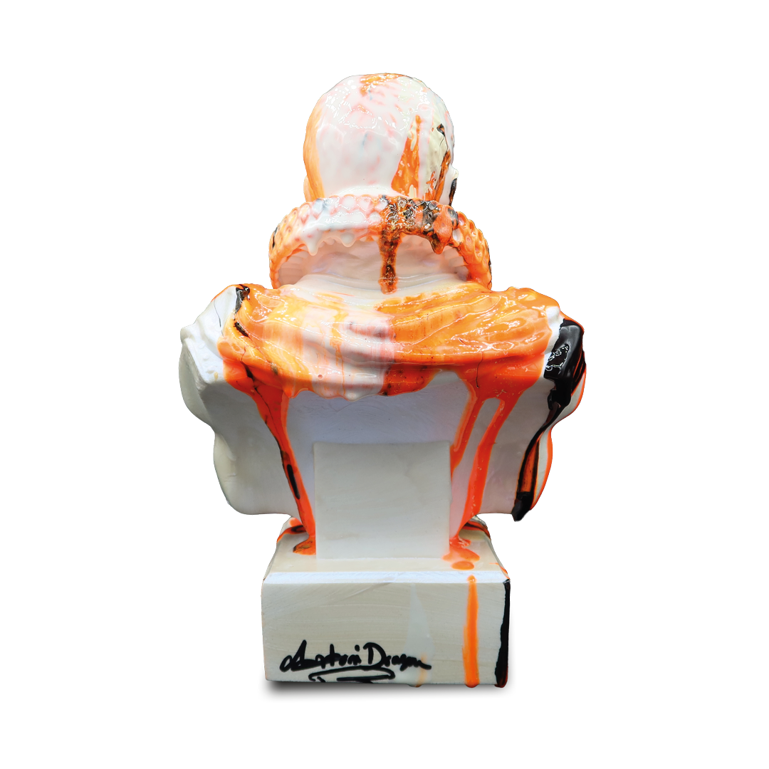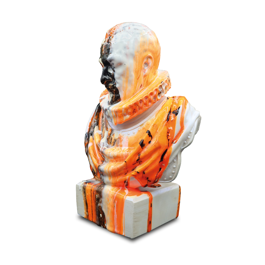 Voor Vader des Vaderlands creëerde Dragan een unieke one-off van onze Willem van Oranje buste in oranje, zwart en wit. Een gesigneerd verzamelobject, geleverd met certificaat van authenticiteit.